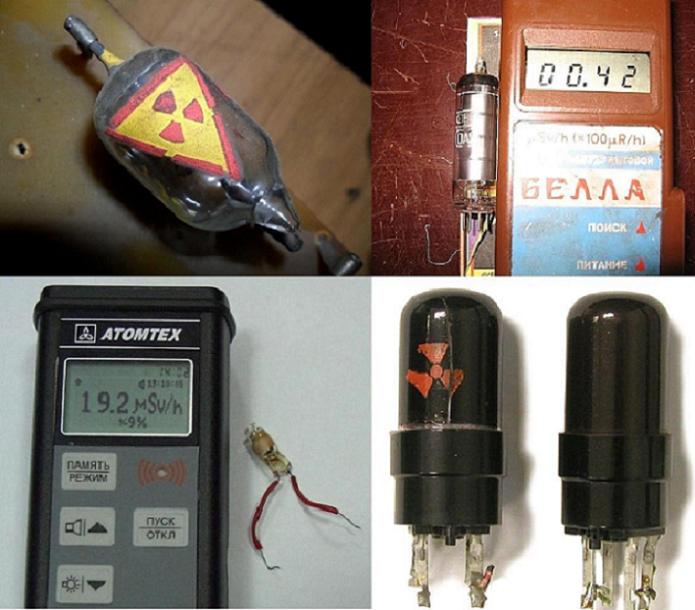 Среди компонентов различной старой радиоаппаратуры, в которых могут присутствовать радиоактивные изотопы, особо можно выделить электронно-вакуумные приборы или, если сказать проще, радиолампы различного назначения, а так же газоразрядные приборы (разрядники). В мощных генераторных радиолампах применяются катоды прямого накала, изготовленные из торированного вольфрама, то есть вольфрама с добавками двуокиси тория, который добавляется в качестве легирующего элемента к вольфраму для увеличения электронной эмиссии катода, а так же является радиоактивным изотопом. Торий так же иногда может присутствовать в так называемых геттерах или поглотителях остаточных газов, которые находятся внутри колб радиоламп. Количество изотопа в таких конструктивных элементах радиоламп невелико, но он там присутствует.
