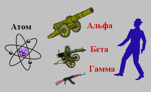 Рис.3. Опасность разного вида радиоактивного излучения.