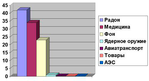 Рис.4. Источники радиации, воздействующие на человека.