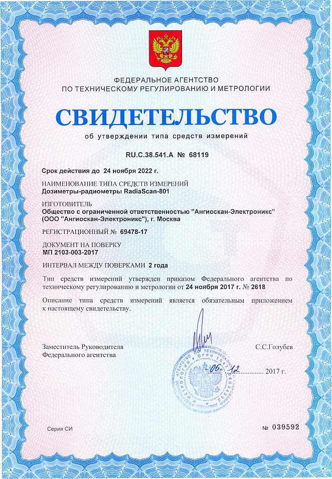 | 3 | Свидетельство об утверждении типа средств измерения | RU.C.38.541.A № 68119 от 24.11.2017 |