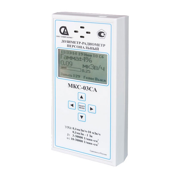 В модели МКС-03СА установлен датчик Бета-5 с площадью поверхности кратно большей, чем в моделях МКС-02СА1 и МКС-01СА1Х (в которых стоит датчик Бета-1-1). Это повышает чувствительность к бета-частицам.Кроме того, в модели МКС-03СА расширен пользовательский интерфейс управления прибором (5 кнопок на панели и большой дисплей)