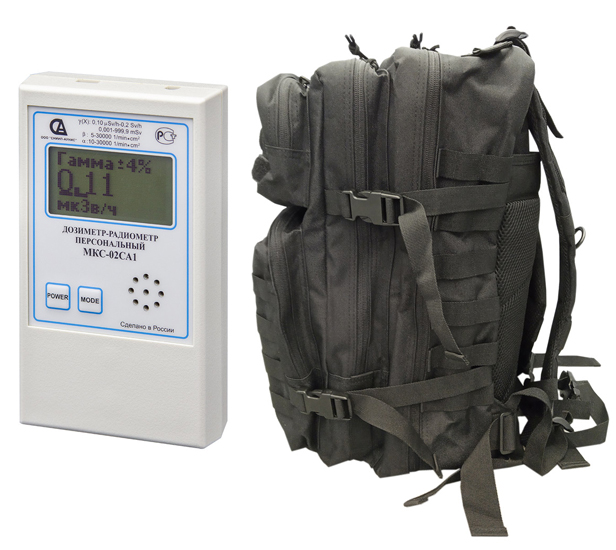Рюкзак выживания в Ядерной войне. Модификация МКС.02-тактик имеет отличие: в составе набора находится мульти-чувствительный дозиметр МКС-02СА1 с высоким пределом измерения радиации до 20 Р/ч.