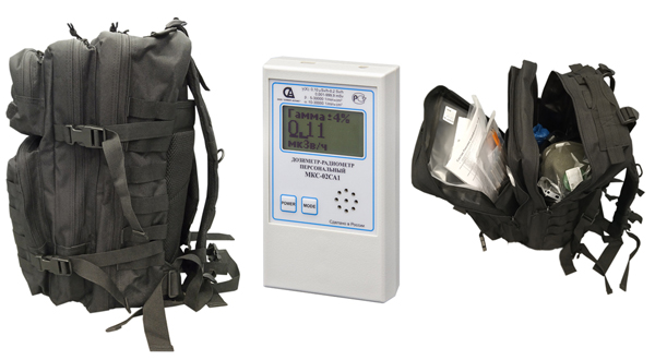 - Наиболее компромиссные версии Рюкзака – те, в которых дозиметр вполне успешно можно применять как в чрезвычайных ситуациях с относительно высокими уровнями радиации, так и максимально полноценно использовать в повседневной жизни. Речь идет о мульти-чувствительных дозиметрах модели РадиаСкан-701А (в модификации 701-тактик), модели МКС-02СА1 (в Рюкзаке модификации МКС.02-тактик) и модели МКС-01СА1Б (в модификации МКС.Б-тактик). При этом из трех указанных дозиметров максимально широким функционалом для применения в повседневном быту обладает модель РадиаСкан-701А.